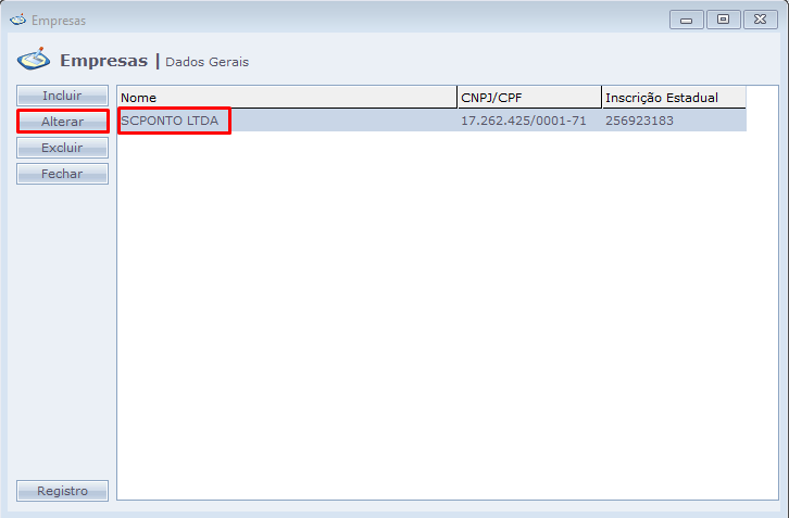 Em seguida irá Selecionar a sua empresa e clicar em Alterar.