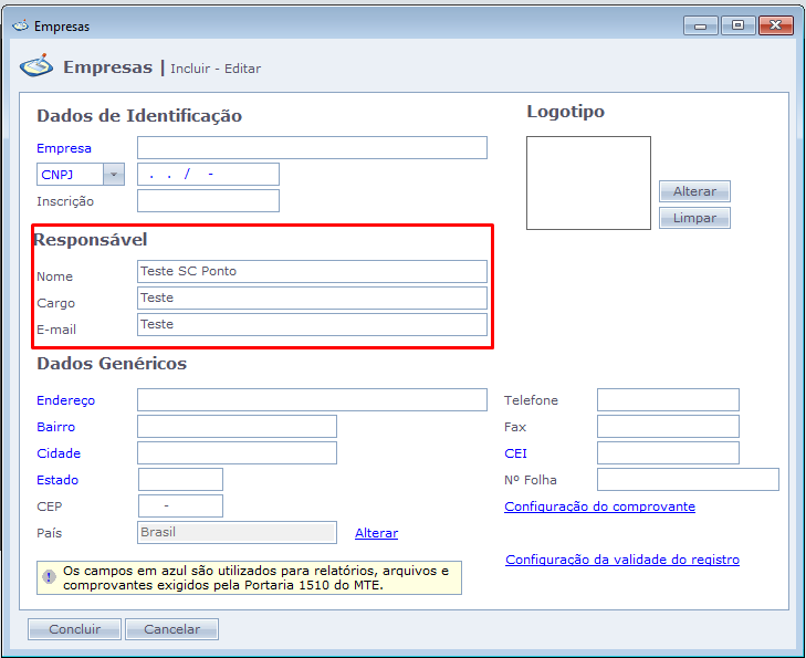 Feito isso, agora é só você Editar as informações do Responsável e clicar em Concluir.