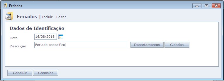 Para incluir um feriado específico clique em “Incluir”, e na tela seguinte digite a data e a descrição do feriado.