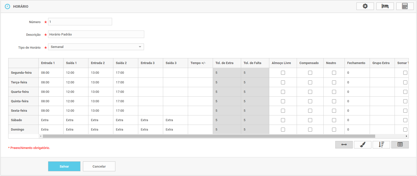O Pré-Assinalado também pode ser usado para as 3 batidas após a Entrada 1, assim, o sistema irá alocar automaticamente após o funcionário realizar a primeira marcação no dia.