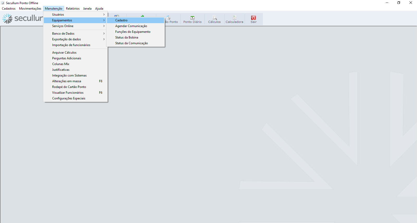 Você vai acessar o menu Manutenção -> Equipamentos -> Cadastro
