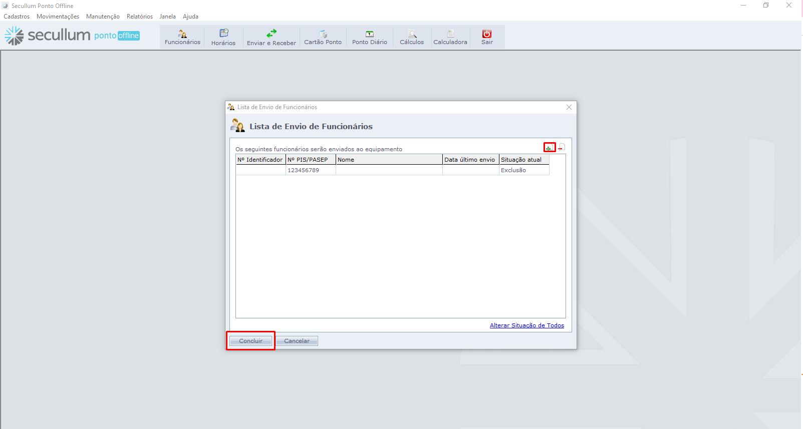 Aqui você irá listar o funcionário com situação de exclusão e clicar em concluir.