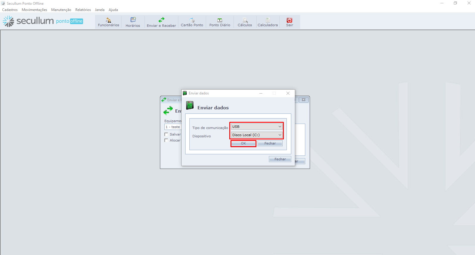 Agora você irá fazer o envio deste funcionário para uma unidade USB inserida em seu computador.