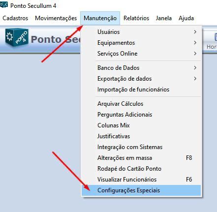 Você irá acessar o menu Manutenção e logo em seguida Configurações Especiais.
