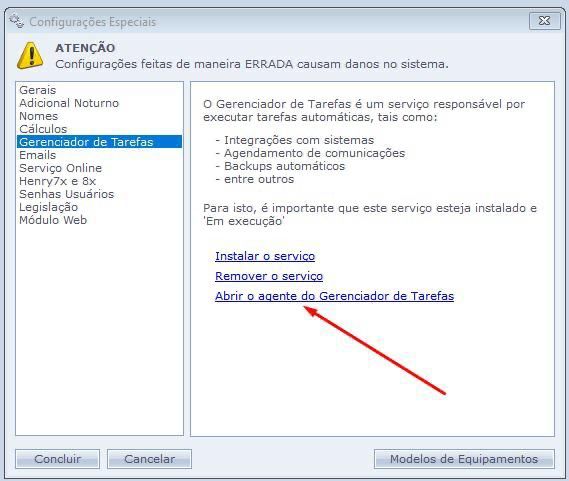 Na tela de configurações especiais você irá clicar em Gerenciador de Tarefas e em seguida Abrir o agente do Gerenciador de Tarefas.