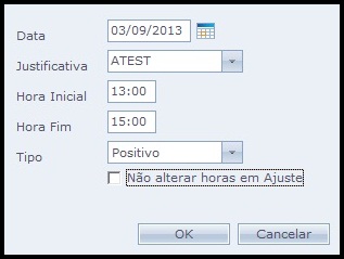 Também pode-se lançar uma justificativa parcial, em uma determinada hora do dia, através do botão Abonos: