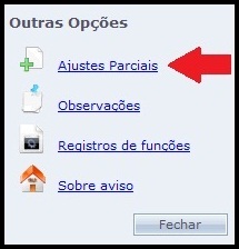 Nesta mesma tela de cartão ponto, clique em opções e clique em Ajustes Parciais.