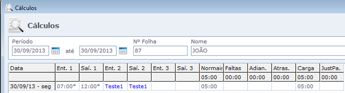 Na tela de Cartão Ponto vá na linha do dia para o Abono > Insira a Justificativa > Salvar > Atualize a tela de Cálculos. No exemplo abaixo, o Horário Previsto do Funcionário é das 07:00/12:00 das 13:00/16:48. No caso o funcionário não realizou as últimas duas batidas. Ao lançar a Justificativa sem a opção Ajuste marcada, o sistema não lança as horas faltantes como Normais nem como Faltas.