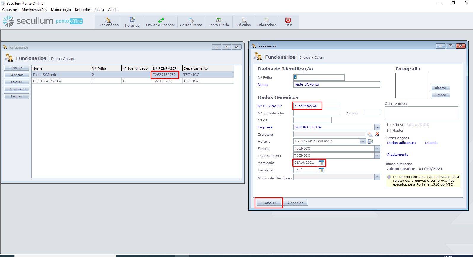 Em seguida você irá preencher a data da nova Admissão do colaborador e clicar em Concluir.