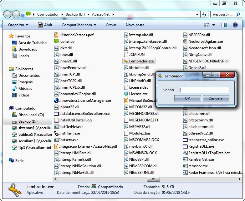 Entre na pasta do Sistema e execute o arquivo Lembrador.exe, será solicitado em seguida uma senha: